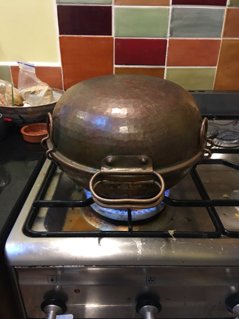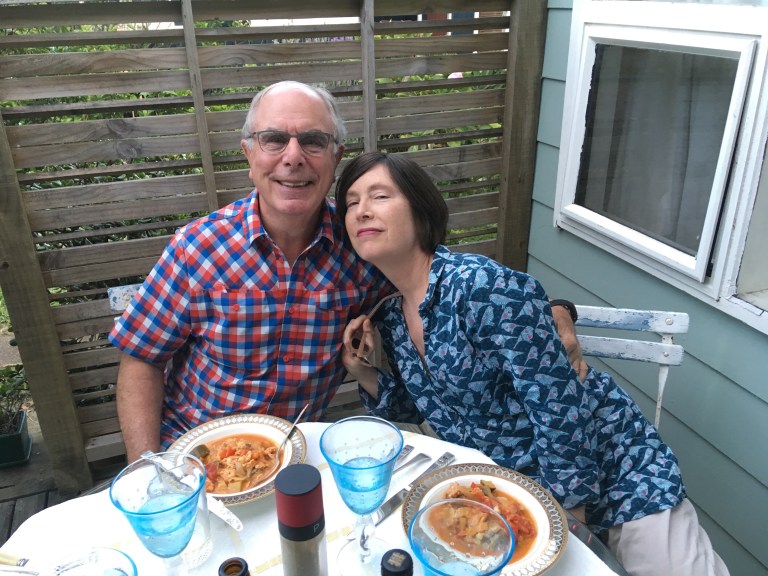Our evening was a delightful and delicious gathering at the home of friends Ellen and Michael. What wonderful hosts and a lovely home too! Ellen and Michael are both artists and presently working on projects collaboratively… beautiful colors and incredibly detailed drawings. Their home is also filled with color and art and did I mention the delicious meal? A fish stew cooked in a Portuguese Catalan cooker. Oh my!