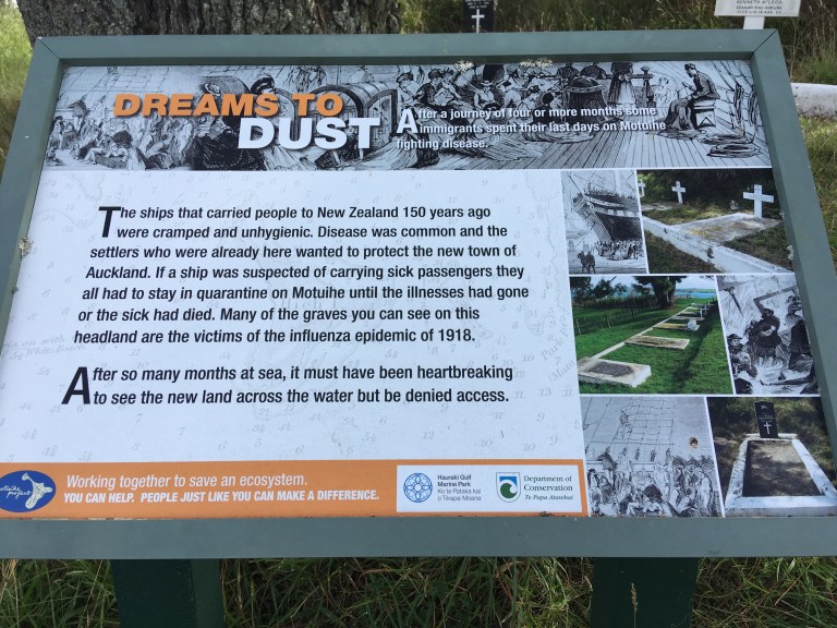 This island has quite a varied history: it was first a Maori settlement; then it purchased to be used as a farm; then it was a quarantine station for ships that had anyone with illness (scarlet fever and Spanish flu); then during World War I it was an internment camp for Count Felix Von Luckner and his crew (he escaped but was recaptured); it was a children’s health camp; a World War II Naval training base. Now it is reserved for habitat, flora and fauna. Those that tend to the island are working hard to get rid of invasive creatures such as feral cats and rabbits (gone) and the worst: rats, who eat the eggs of ground nesting, flightless birds like kiwis.