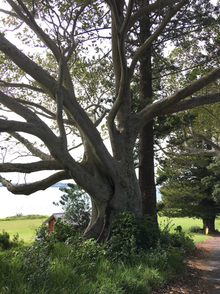 A beautiful, beautiful place for a game of shuttlecock! The big tree with the elephant-like/mangrove-like base must be related to the Ceiba tree of Central America which figures importantly in Mayan cosmology. It would be interesting to know if the Maori give that tree any role in their creation myths.
