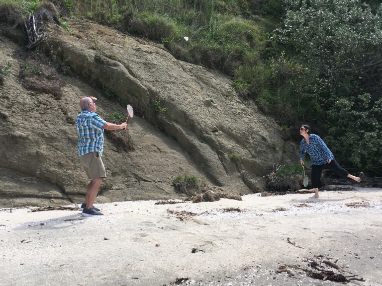 We set up our lunch, had a delicious meal, did a little bit of exploring and then it was time for badminton! Johanna and Michael bring along rackets and birdies to play badminton wherever they travel so this was our spot. It was challenging due to sun in our eyes and wind but was very fun!