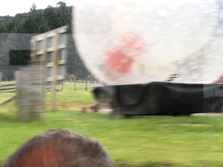 See big plastic balls at top? And fuzzy plastic ball at bottom (sorry for poor picture quality!)? A Zorb…not my idea of fun but for some….