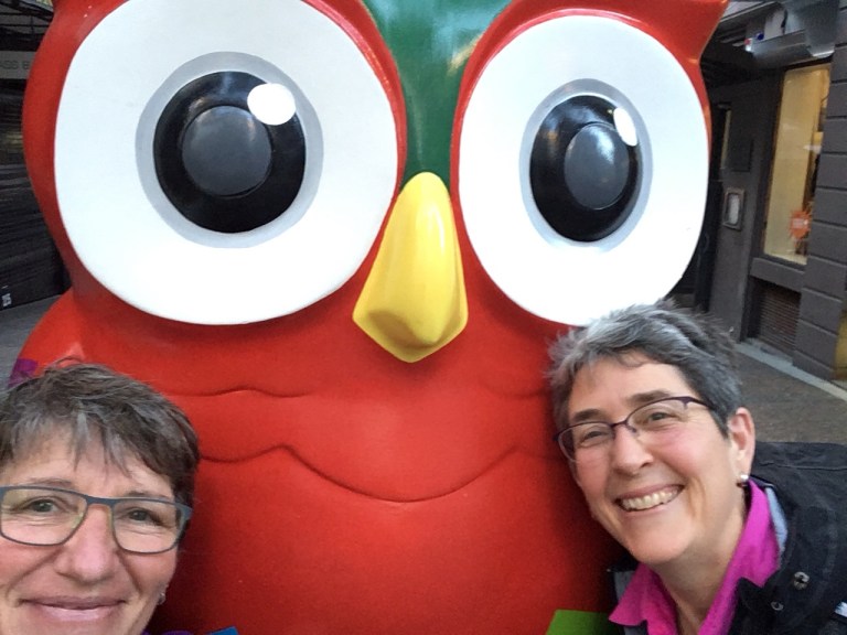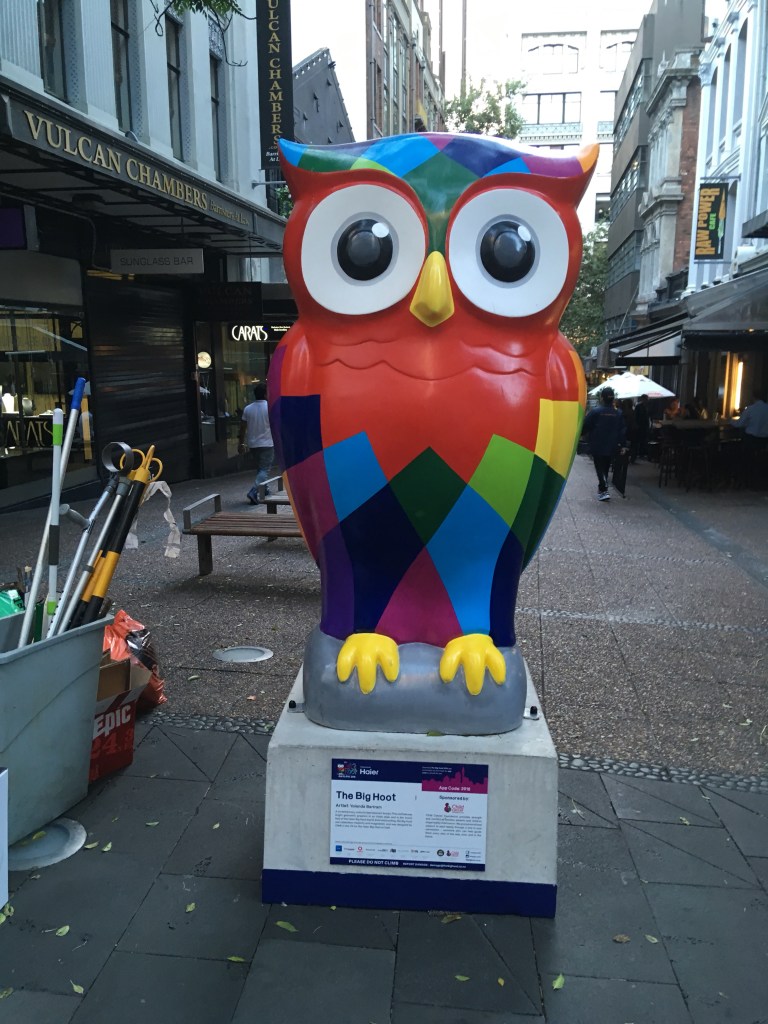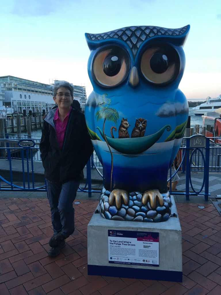 Difficult to tell, but that’s Karen on the left at the base of the lighted pedestal…and just about out of energy herself. That was Karen’s introduction to Auckland and now her New Zealand adventure begins!