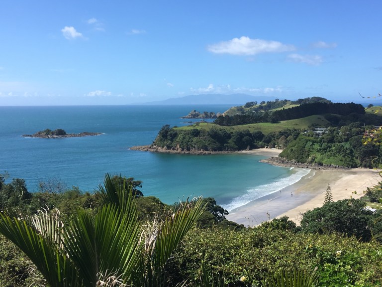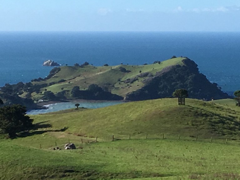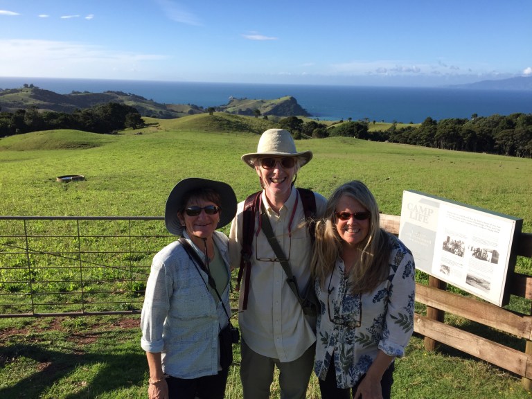 We had planned for Karen to visit Waiheke Island soon after her arrival to New Zealand, before we headed south. The next day we boarded the ferry for a day visit to see Lynn and tour the island with Ellen and Michael. What kind and generous people all the way around. Lynn welcomed us at the ferry dock in the morning and brought us to her house. We looked at the beautiful art on her walls, learned about her family, had tea and then went into planning mode for our upcoming journey to the South Island. At this point the visit devolved into phone calls, being put on hold, confirmation numbers and more internet searches. It was a lovely but too short visit. We’ll see Lynn briefly when we return to Auckland on our last day.