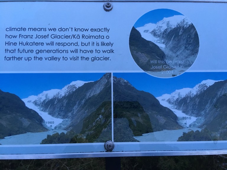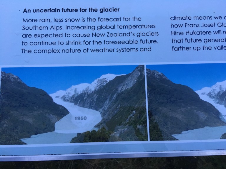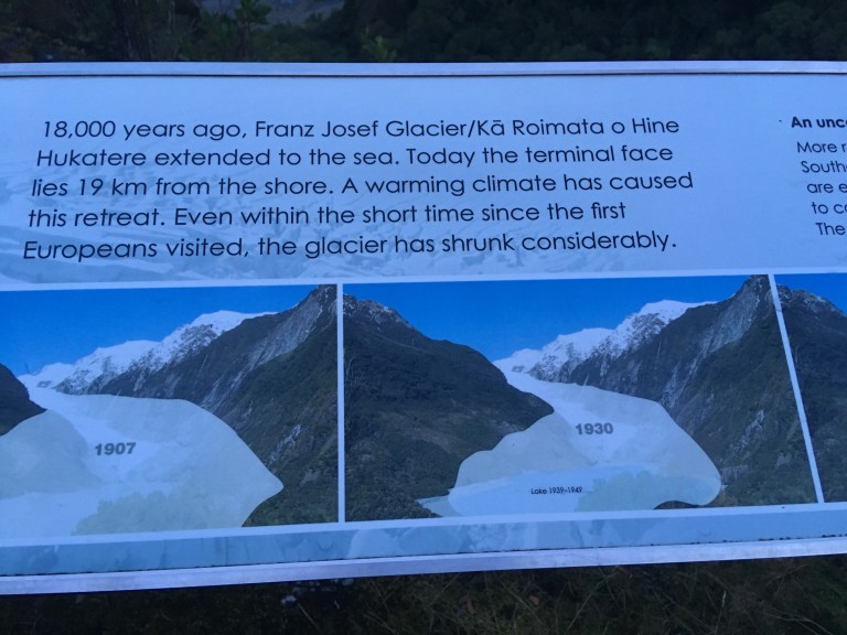 I’m not sure you can see the graphics on the interpretive board but they’ve put a 2010 prediction of where they thought the glacier would have receded to and it doesn’t match the same rate of melting to where it is today. Time to update the information and increase the rate of recession, unfortunately.