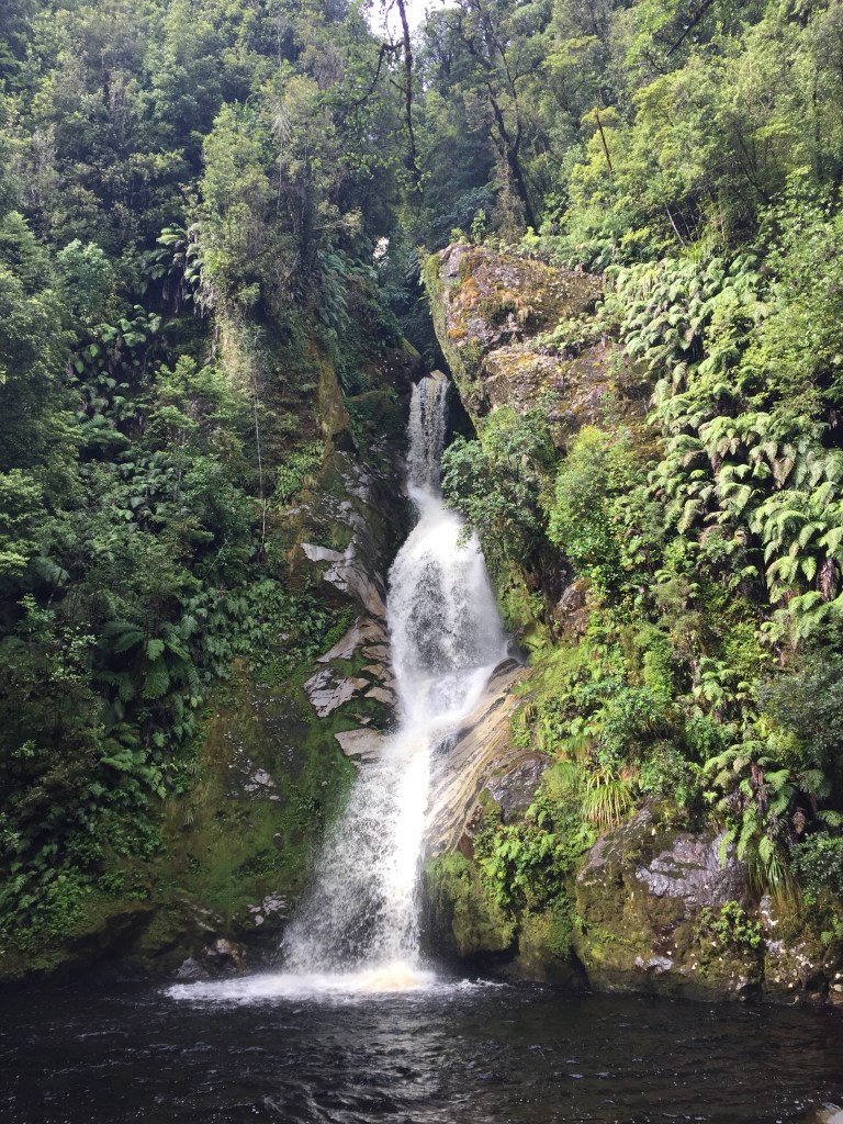 Because we wanted to make sure we got to Franz Josef Glacier before dark, we needed to leave Hokitika Gorge. We made some stops at a couple of more waterfalls and a lake that is quite popular, crossing The River Styx not once but twice!
